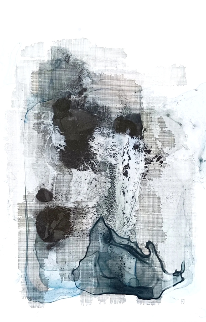 Inspiration du moment par mes lectures fantastiques. C'est le papier photo cette fois qui me guide. Le choix des pigments&couleurs sont improvisés, l'outillage également. Une recherche intérieure plus profonde est à l'oeuvre. Quelque chose est en préparation dans la matière, quelque chose doit émerger.