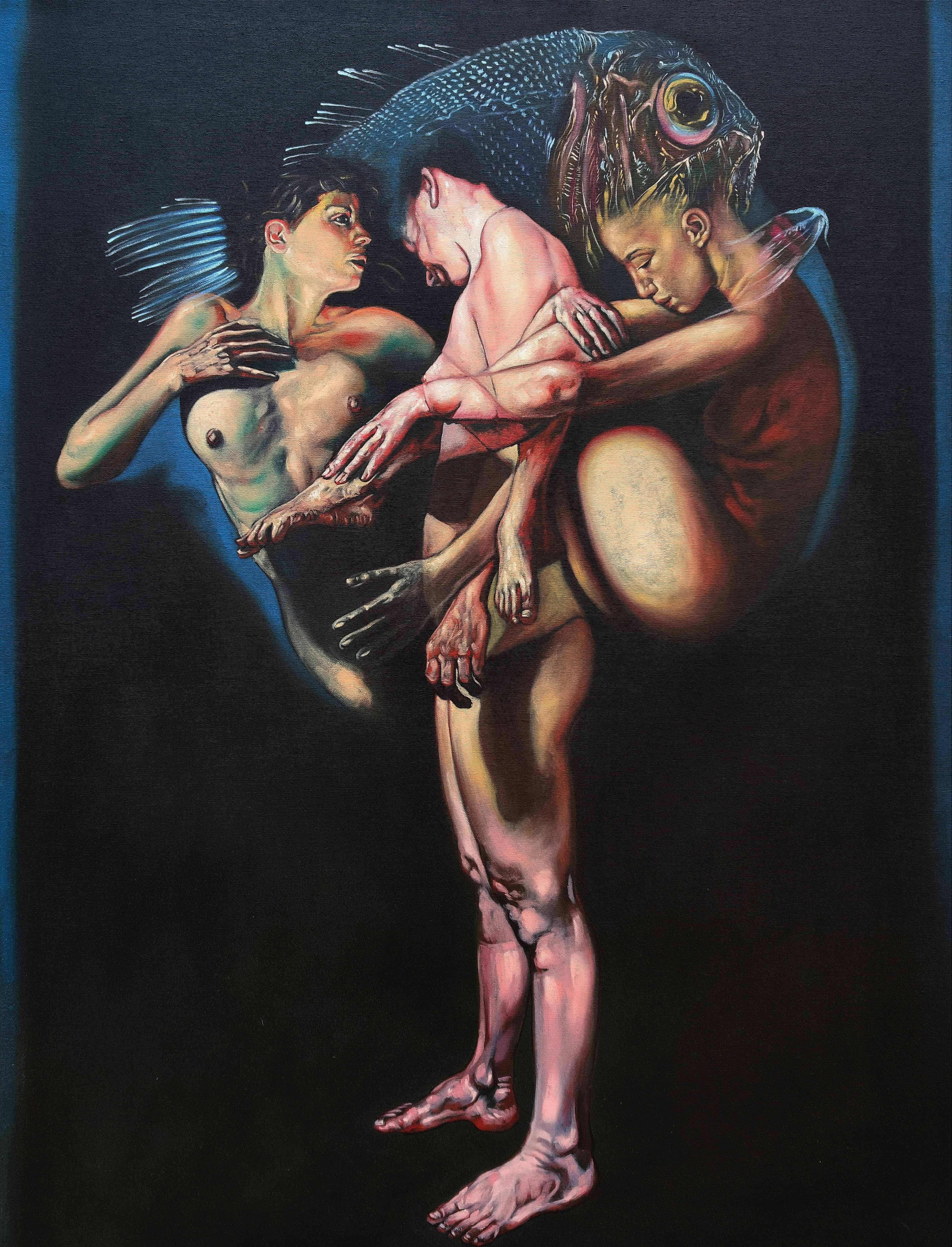 Nel dipinto una serie di figure umane e animali si raggruppano in uno spazio irreale, vuoto, embrionale. Questi corpi si intersecano tra loro creando una sensazione vibrante e dinamica. Mescolandosi tra loro le figure sembrano trasformarsi, si accingono a cambiare forma, da una figura all'altra, da un corpo umano ad uno animale e viceversa. Nella vita degli organismi il divenire della forma è una costante sempre presente in qualsiasi condizione. Questo continuum lo vediamo intorno a noi, lo viviamo intimamente, è una metamorfosi ciclica che prende inizio sin dallo stato embrionale.