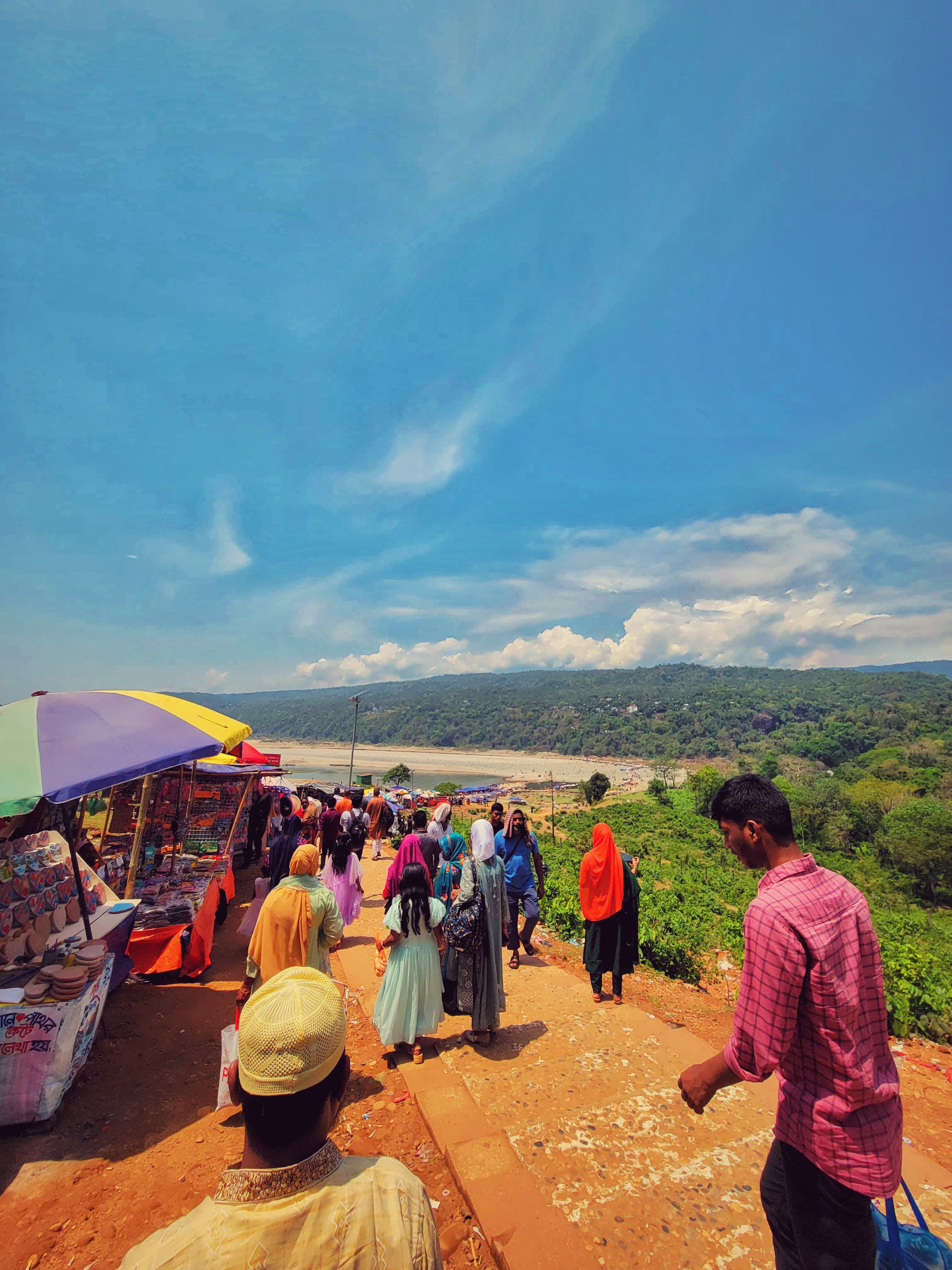 A moment in time, frozen by Minhad Tofayel and brought to life through the edits of Oviul Maruf. Feel the energy of the bustling walkway, the allure of the colorful stalls, and the promise of the vista that awaits – a peaceful river flowing towards distant, verdant hills beneath a boundless blue sky.