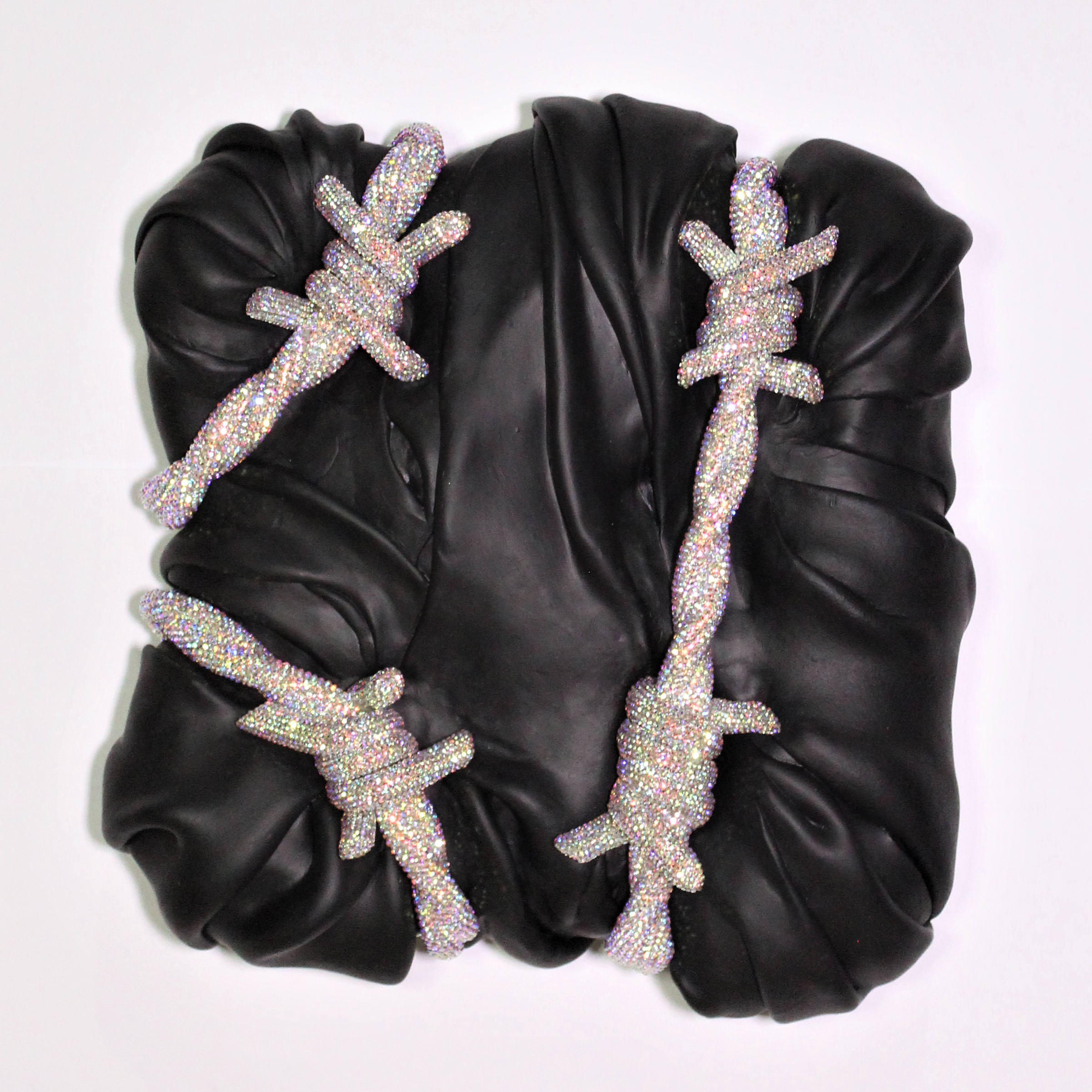 Artwork Technique: Cold porcelain sculpture, barbed wire studded with crystals.