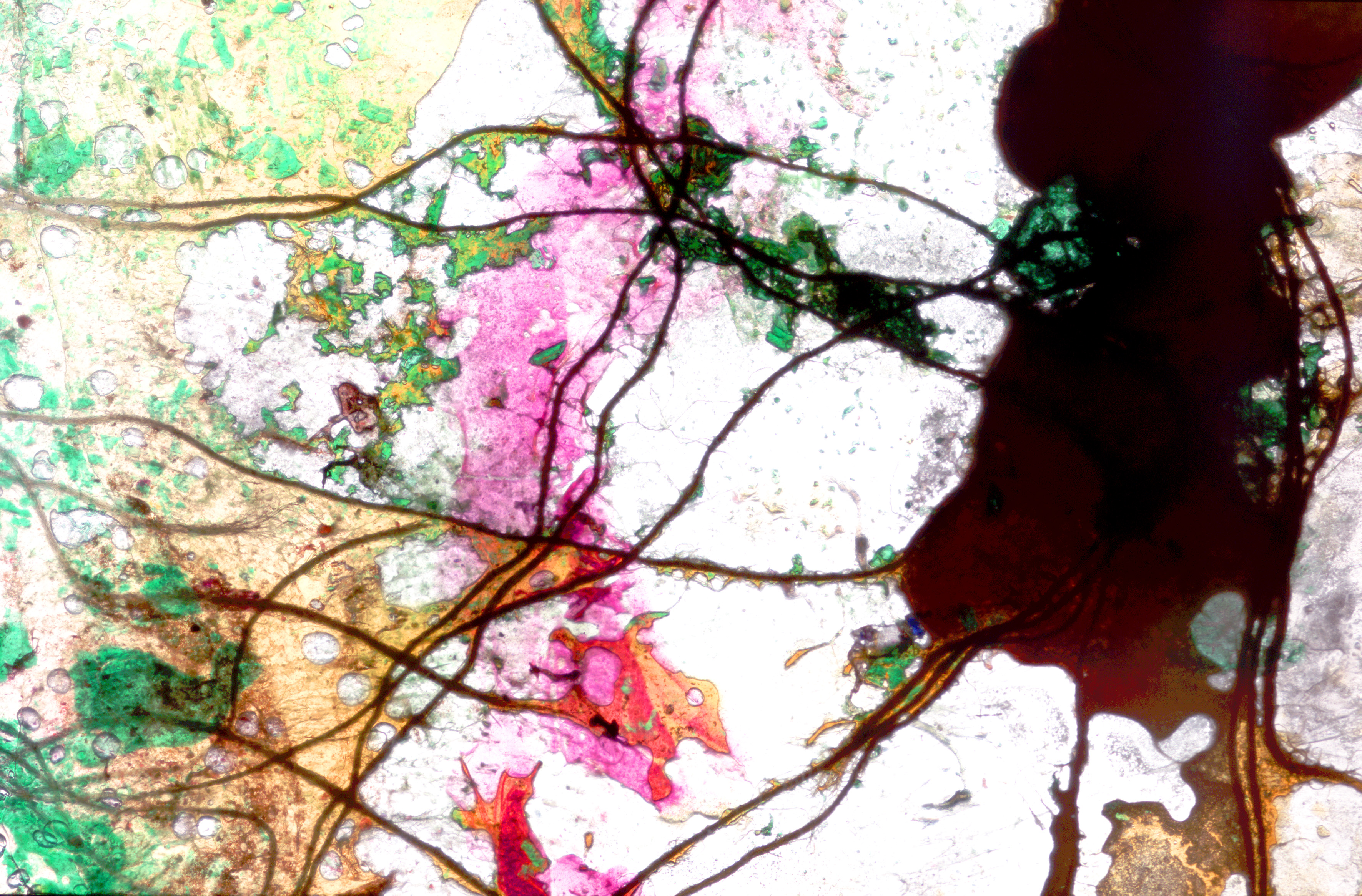 Il tema dei rifiuti viene affrontato da una prospettiva microscopica attraverso due fasi: una microproduzione visiva pittorica e la successiva stampa su forex. Nella prima fase, scarti organici e inorganici, selezionati e separati, vengono mescolati, trattati, ingranditi e osservati fino a rivelare dimensioni e forme inattese. Questo processo, sospeso tra alchimia e dissacrazione, richiama il tempo biologico e geologico della natura.