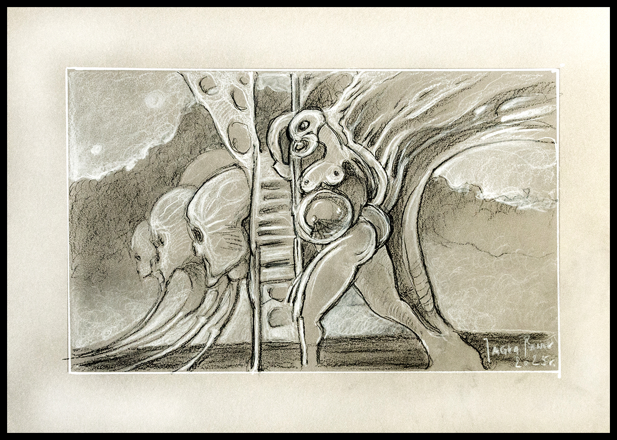 Praca wykonana na papierze 250 gr/m2 format A3 w oprawie aluminiowej czarnej pod szkłem.