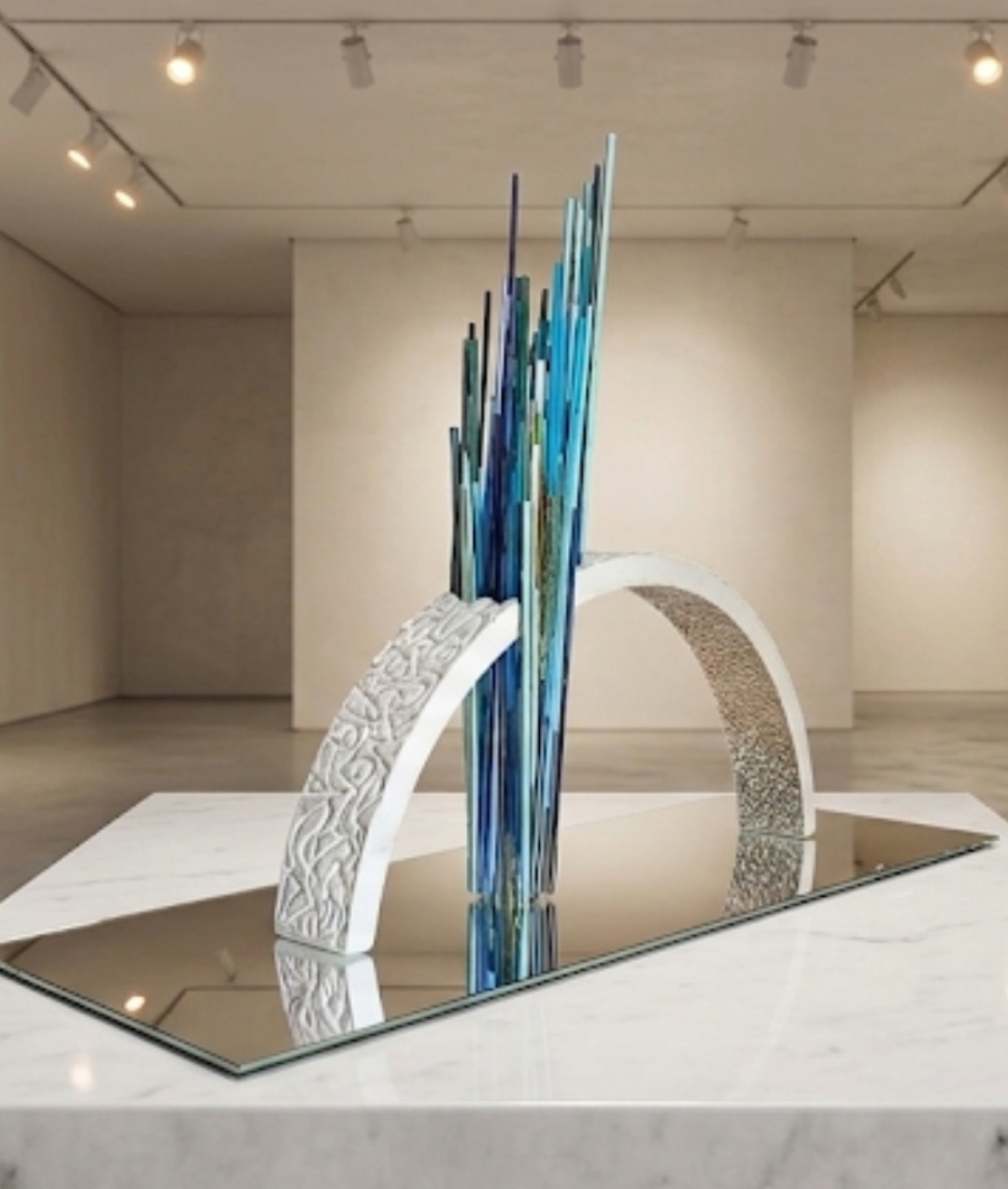 I segni incisi nella dura argilla sono i nostri pensieri più profondi, impressi nel nostro io, la mente lavora, scava, da un senso alla realtà cercando consapevolezza; ma sotto di noi i pensieri dipinti d'oro, simboleggiano il cuore pulsante dell'opera, la nostra essenza preziosa che riflettendosi nello specchio da libero sfogo a un'epidemia di pensieri e di conseguenza alla creazione delle nostre azioni. L'opera vuole rappresentare un processo di evoluzione sebbene le saette blu e verdi sembrino interrompere il cammino, in realtà agiscono come catalizzatori di pensieri riflessi e non. Il ponte la più ardita e la più fragile delle costruzioni relazionali, simbolo di reciprocità, il suo attraversamento apre alla novità dell'altro. La "riflettanza" dello specchio costringe il fruitore a posizionarsi correttamente per vedere il cerchio perfetto dove lui ne farà parte, e solo in quel momento l'opera sarà completa.