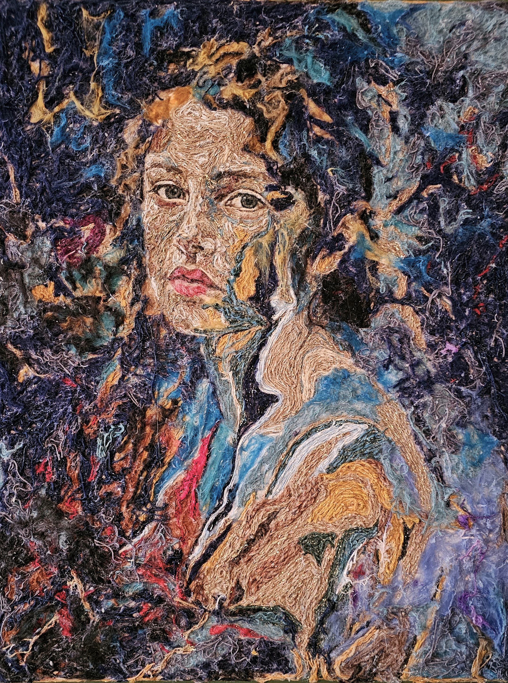 This portrait expresses a woman's inner state during a transitional phase, caught between existing and becoming. Her gaze is filled with silence that holds fatigue, resistance, and strength.