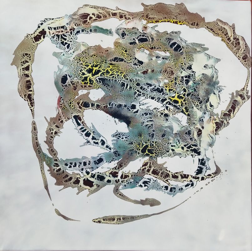 Phoenix got created during a live video performance (see marcoriha.com) As a contemporary Surrealist I put my reason aside and let the subconscious take over the artistic process. After completion I decide on a title. Phoenix stood out and is a reminder of the times we are going through right now globally.