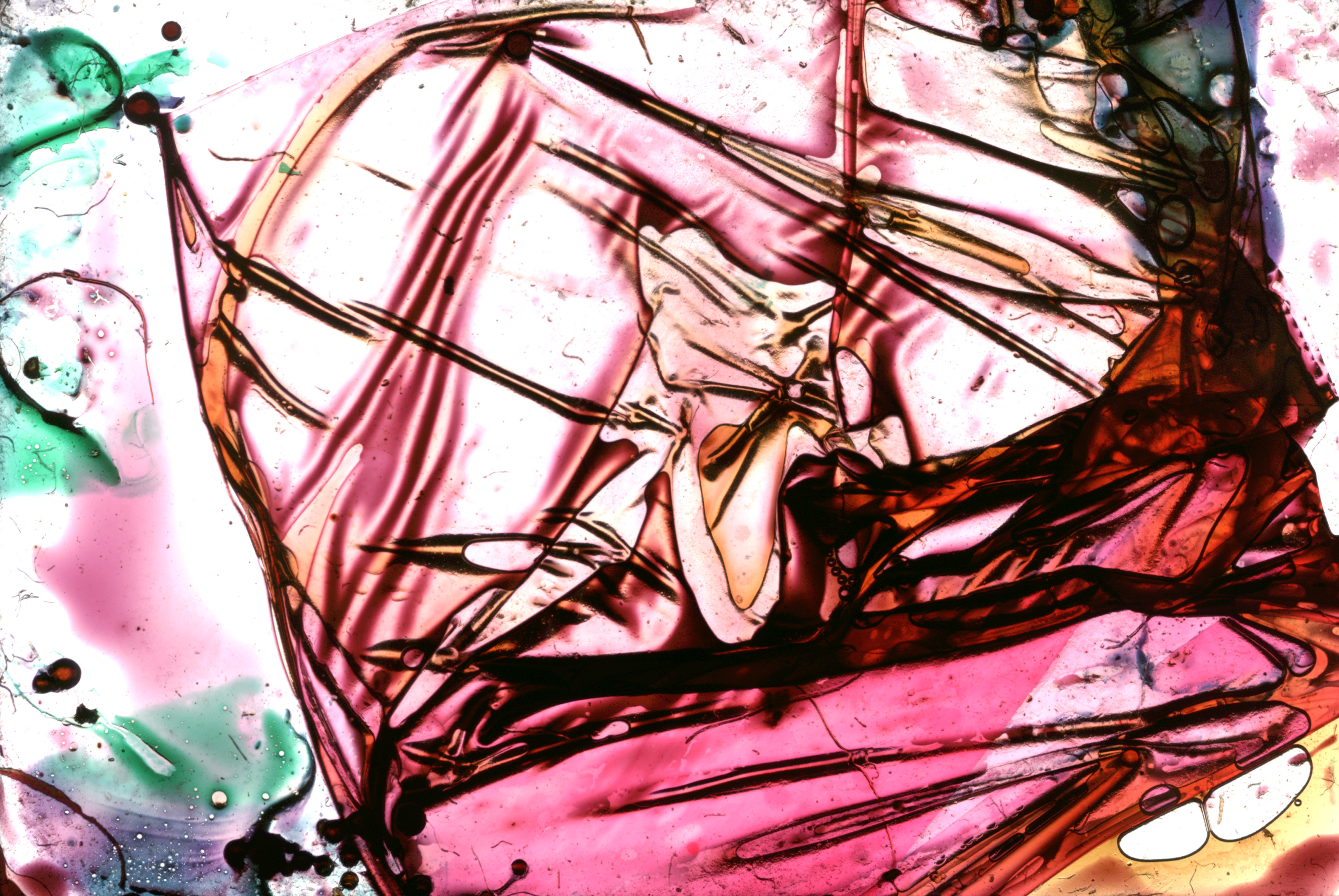 Da questa sedimentazione emergono micro-frammenti fissati su acetato e montati su telai per diapositive 24×36 mm. L’uso di coloranti e colle naturali trasforma tali frammenti in materia visiva, mostrando come ciò che viene scartato continui a esistere e a mutare nel tempo.