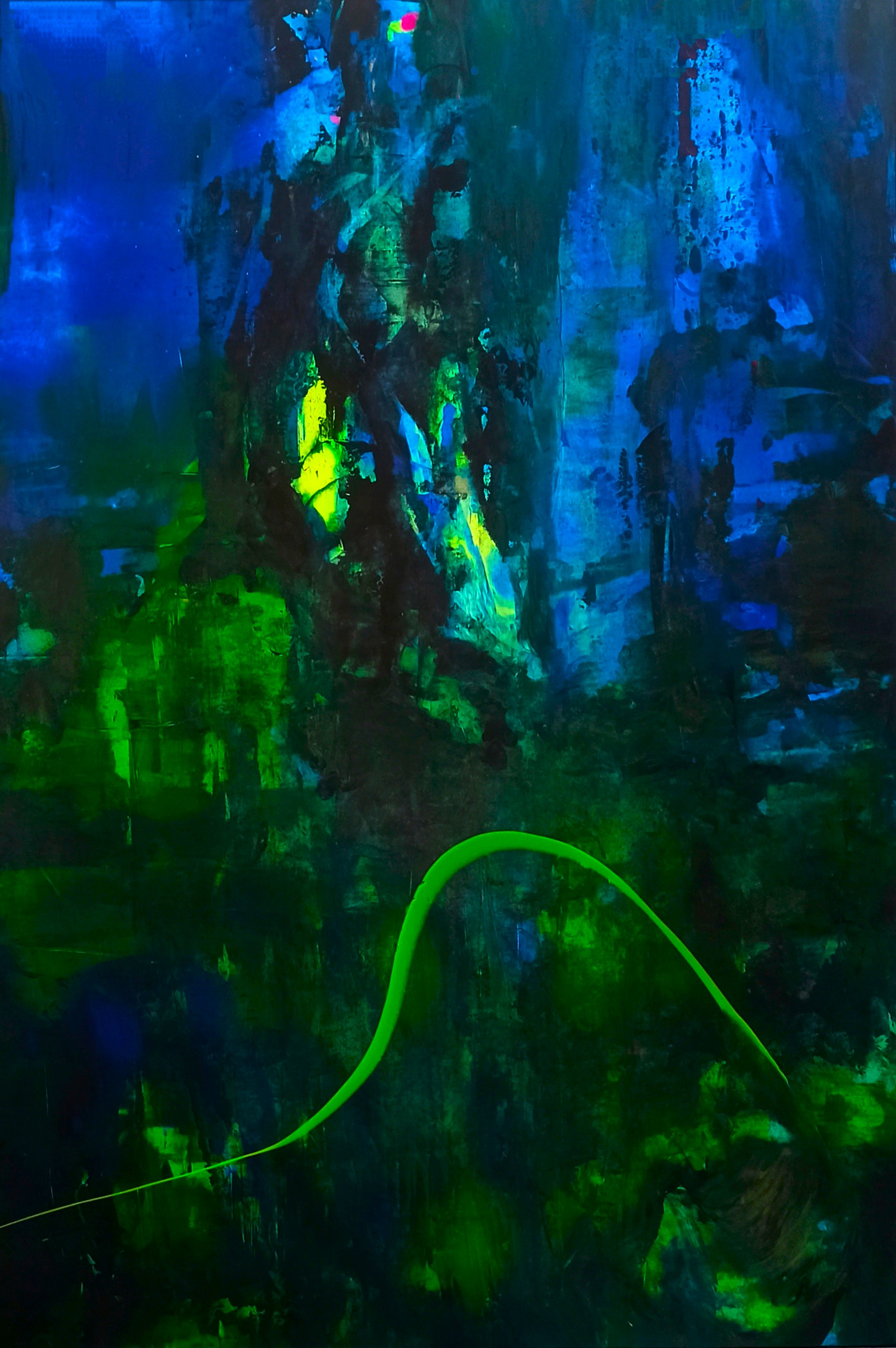 "HOPE AND DOUBT" develops the theme of immersion present throughout the series, leading the viewer into a cooler, more contemplative space. The dominant shades of green and navy blue create a sense of a deep, almost nocturnal space, where intense accents of yellow and pink appear as pulses of energy or traces of emotional tension, a glimmer of hope emerging in a delicate space of doubt.