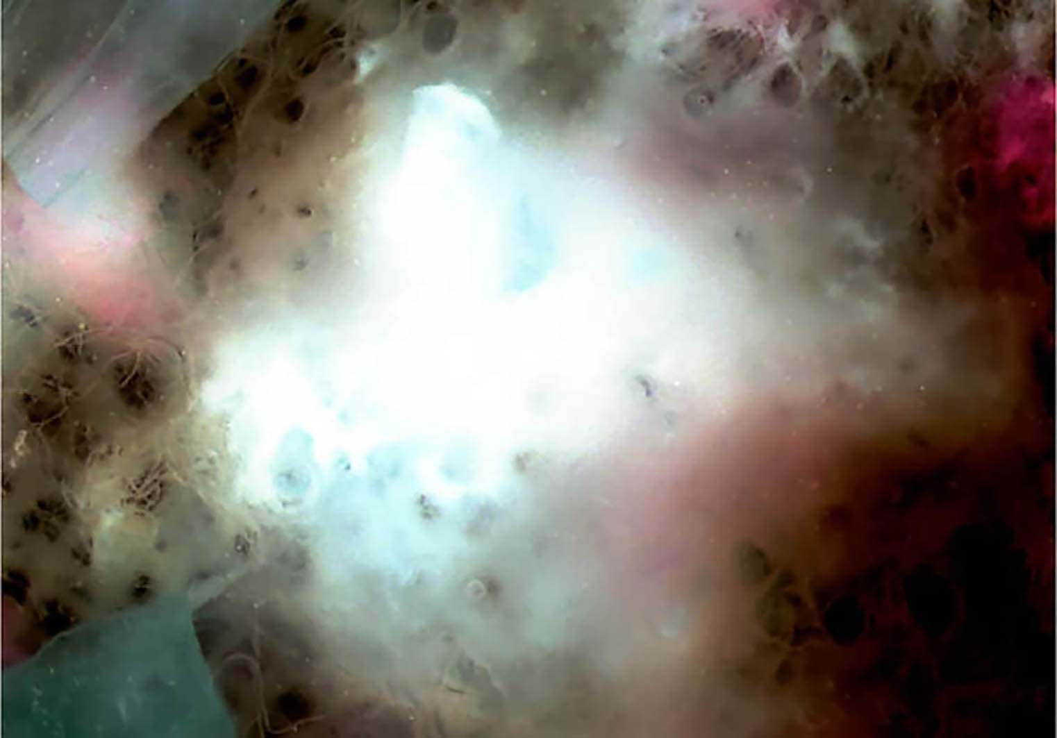 Tecnica mista di colori, colle e materiale organico e inorganico su supporti in acetato montati su telai per diapositive da 24×36 mm, successivamente digitalizzati e stampati o video proiettati