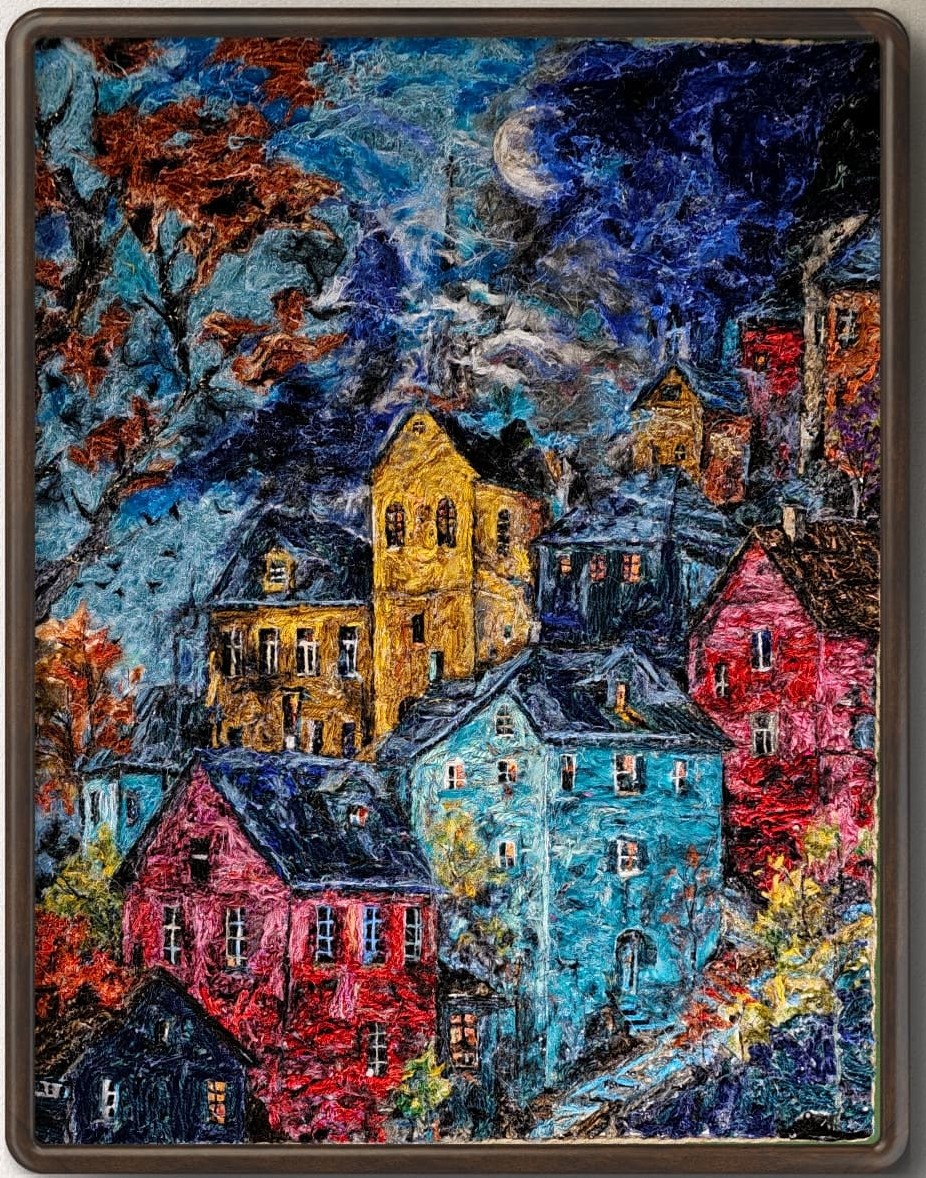 Beneath a moonlit sky, colors bloom like dreams across the hillside.