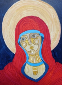 An angel with a red wing.