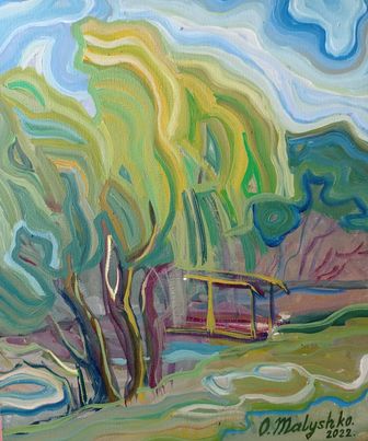 This painting was created in the spring of 2022 during the war. For a long time I could not draw anything without explosions, I started and everything went - as it went. This is probably the only small picture written by hands that did not listen to heads.